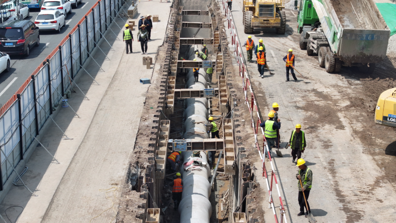 太原市政集團(tuán)堅(jiān)決扛牢使命擔(dān)當(dāng),強(qiáng)化統(tǒng)籌、多方聯(lián)動(dòng),想盡一切辦法,克服一切困難,全面對(duì)標(biāo)看齊“迎澤標(biāo)準(zhǔn)”,堅(jiān)持以全局觀念和系統(tǒng)思維謀劃推進(jìn)項(xiàng)目建設(shè),采用半幅封閉施工、平行流水作業(yè)方式,克服工程體量大、施工內(nèi)容繁重、建設(shè)工期緊張等困難與挑戰(zhàn),一體推進(jìn)道路、管線、照明、沿線景觀等建設(shè)任務(wù)。項(xiàng)目伊始,規(guī)劃“導(dǎo)航圖”,研討節(jié)點(diǎn)安排、工序銜接、資源配置等關(guān)鍵環(huán)節(jié),制定十余套專項(xiàng)施工方案,優(yōu)化組織設(shè)計(jì),形成管理閉環(huán);繪制“進(jìn)度表”,建立分級(jí)負(fù)責(zé)、動(dòng)態(tài)調(diào)整的進(jìn)度管控體系,提升9個(gè)工區(qū)自主管理效能,錨定工期目標(biāo),加快施工效率。施工過程中,掃清“攔路虎”,采用鋼板樁支護(hù)、分層開挖、放坡開挖工藝,克服地下管線復(fù)雜、開挖深度大、地下水高等難點(diǎn),確保管網(wǎng)升級(jí)與地鐵運(yùn)營和諧并行;保持“攻堅(jiān)態(tài)勢(shì)”,針對(duì)重難點(diǎn)部位,提前制定專項(xiàng)方案,全部進(jìn)行技術(shù)交底,著重加強(qiáng)安全、質(zhì)量管控,形成高效施工態(tài)勢(shì)。注重以人為本,提升“施工溫度”,細(xì)化各項(xiàng)便民、利民措施,最大限度降低對(duì)市民日常生活的影響,保障通行需求;擦亮“市政名片”,開展道路清理志愿服務(wù)活動(dòng),用實(shí)際行動(dòng)為城市“美容”,展現(xiàn)國企擔(dān)當(dāng)。