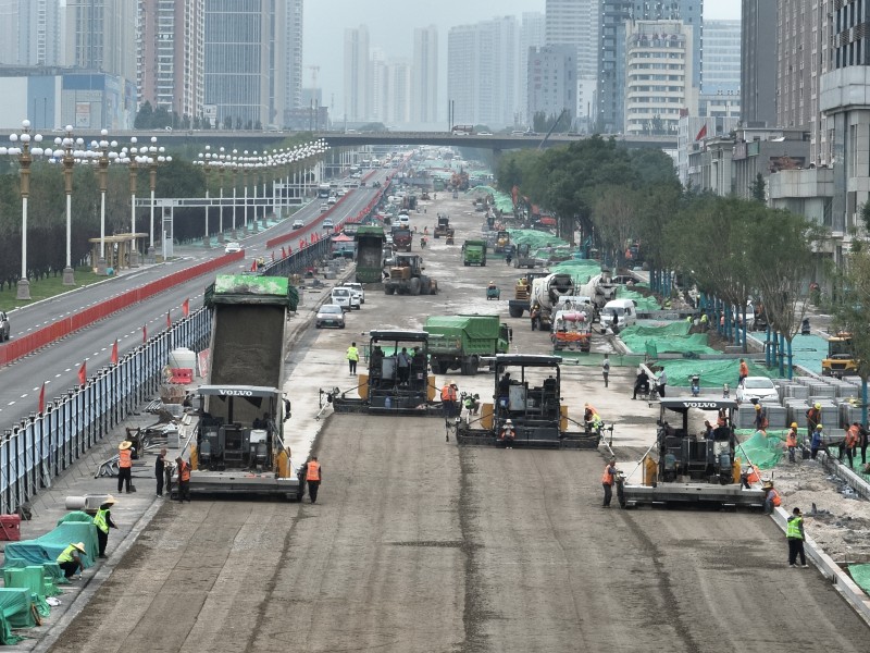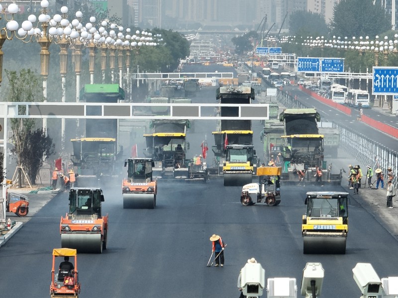 面對全長4.3公里的施工戰(zhàn)線,租賃公司和路面公司展現(xiàn)了高度的專業(yè)協(xié)作與責任擔當。租賃公司科學調度大量大型機械設備,包括銑刨機、壓路機和攤鋪機等,按照施工計劃分批次進場,確保了“分段流水、平行作業(yè)”模式的高效運轉。通過精準匹配機械供應與作業(yè)面規(guī)劃,他們?yōu)楣こ烫峁┝藞詫嵉脑O備保障,同時嚴格執(zhí)行機械操作安全規(guī)程,有效管控高風險作業(yè)環(huán)節(jié)。在機械設備充足的同時,路面公司聚焦道路施工的質量與精細化管理。在完成地下管網(wǎng)改造工程后,他們迅速推進路面工程施工進度,實施水穩(wěn)、瀝青鋪筑工作。面對高溫和雨季的持續(xù)挑戰(zhàn),路面公司施工人員堅守一線,嚴格把控每道工藝,以精益求精的施工質量和爭分奪秒的施工速度圓滿完成施工任務,完成全線水穩(wěn)和瀝青的攤鋪工作。租賃公司和路面公司通過與施工單位的緊密配合,展現(xiàn)了同心協(xié)力、協(xié)同作戰(zhàn)的施工風采,助力迎澤大街(西段)煥新升級,彰顯了太原市政集團的專業(yè)水準與責任使命。