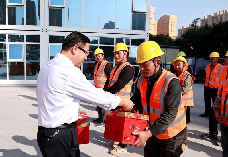 活動中,市總工會領(lǐng)導(dǎo)與一線施工人員進(jìn)行了親切交談,仔細(xì)詢問項(xiàng)目進(jìn)展和員工生活保障情況,并為大家送來了月餅、豬肉等慰問品。