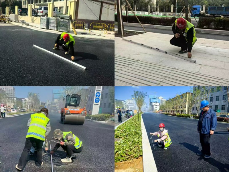 理論與實(shí)踐緊密結(jié)合,方能彰顯力量。各在建項(xiàng)目部積極響應(yīng),組建由項(xiàng)目經(jīng)理掛帥,工長(zhǎng)、質(zhì)檢員協(xié)同作戰(zhàn)的質(zhì)量檢查小組。他們攜帶測(cè)溫儀、塞尺、鋼直尺等專(zhuān)業(yè)工具,深入施工現(xiàn)場(chǎng),對(duì)道路面層與工程材料展開(kāi)“地毯式”排查,從路面平整度到材料規(guī)格,不放過(guò)任何細(xì)微之處,將質(zhì)量管控觸角延伸至施工現(xiàn)場(chǎng)的每一角落,用實(shí)際行動(dòng)守護(hù)工程質(zhì)量的“生命線(xiàn)”。